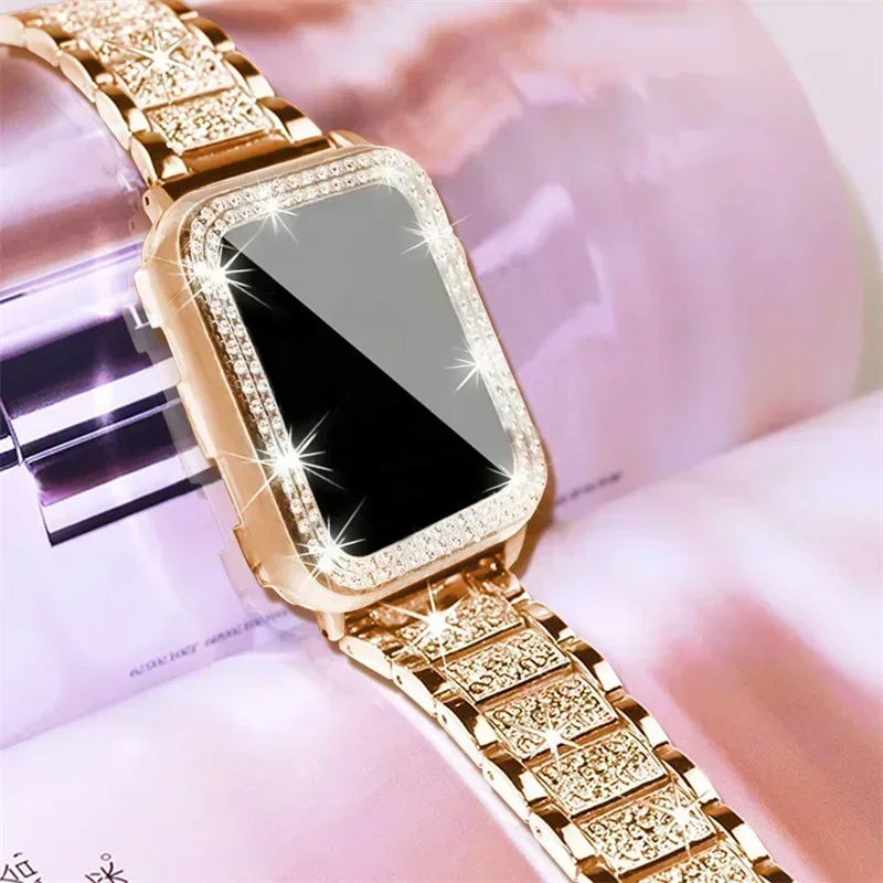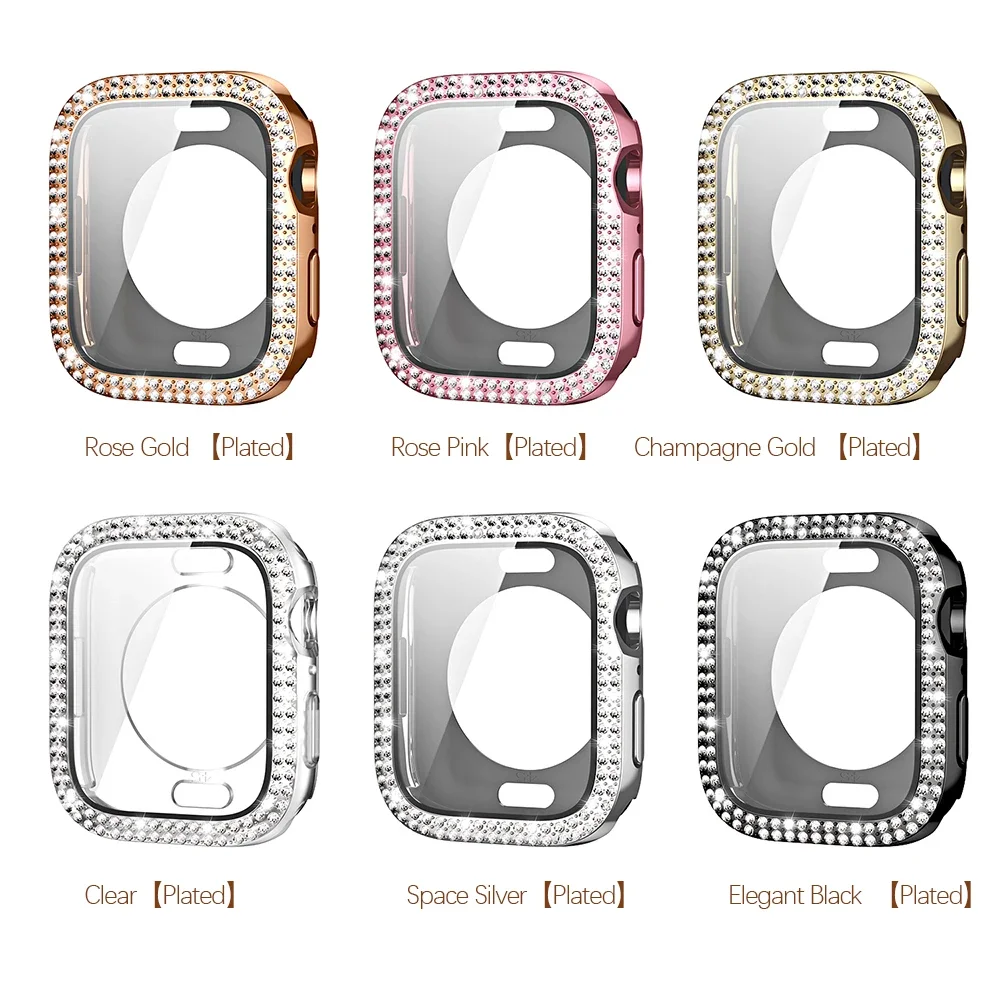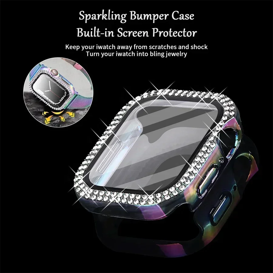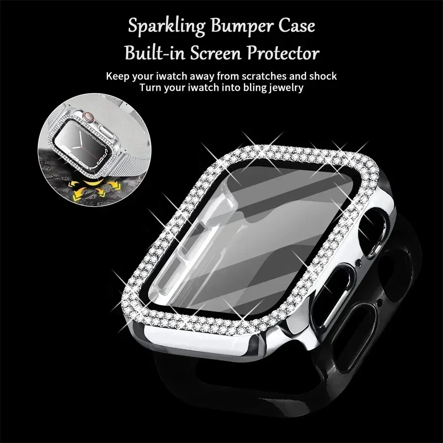 Bling Glass+Cover For Apple Watch Case 44mm 45mm 41mm 40mm 42mm 44 mm Diamond bumper+Screen Protector iwatch series 7 9 8 5 6 SE