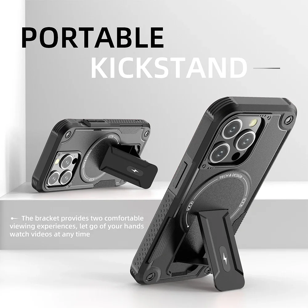 For Magsafe Stand Invisible Support Phone Case for IPhone 17 16 15 14 11 13 12 Pro Max Plus Wireless Charging Hard Anti-fall Cover