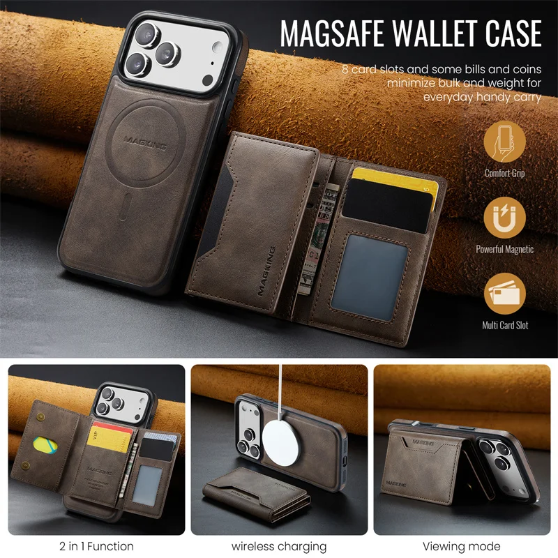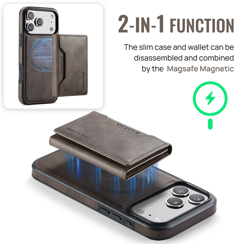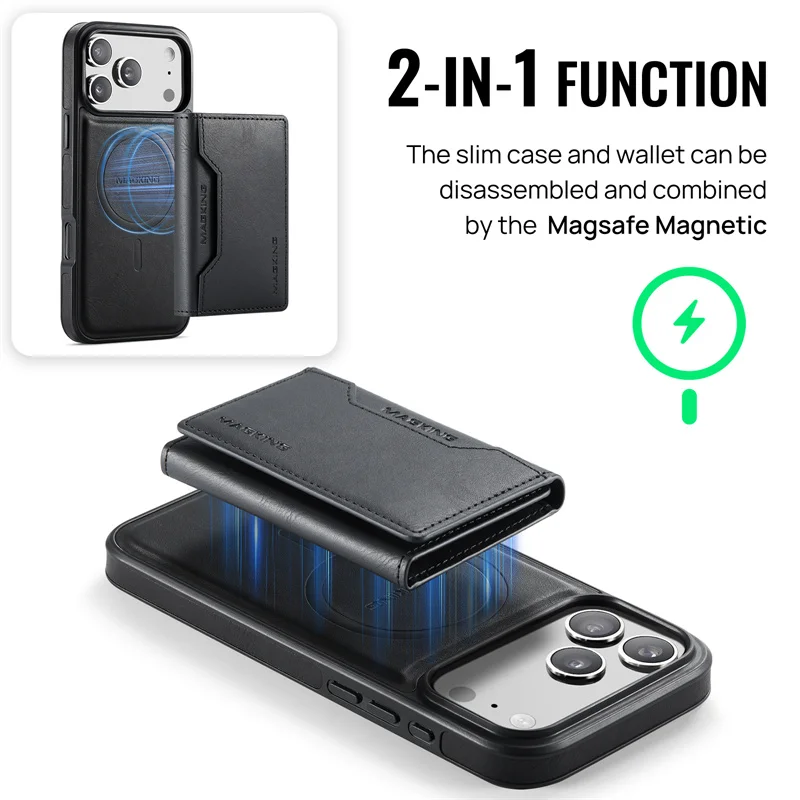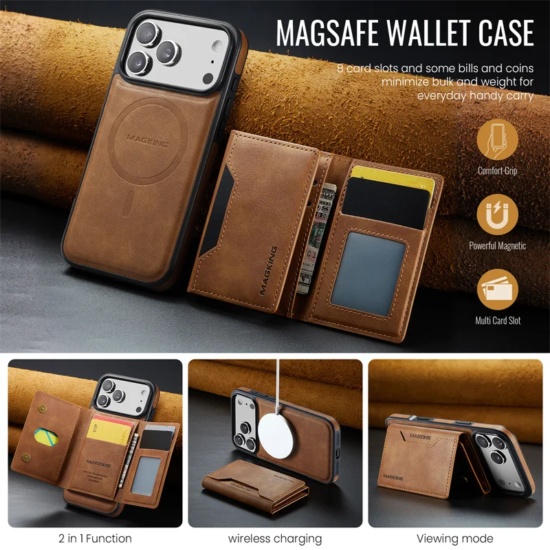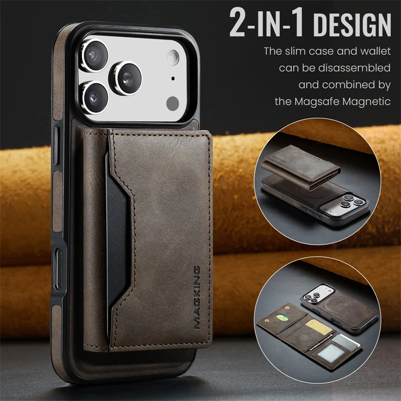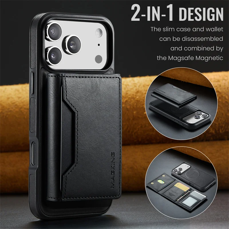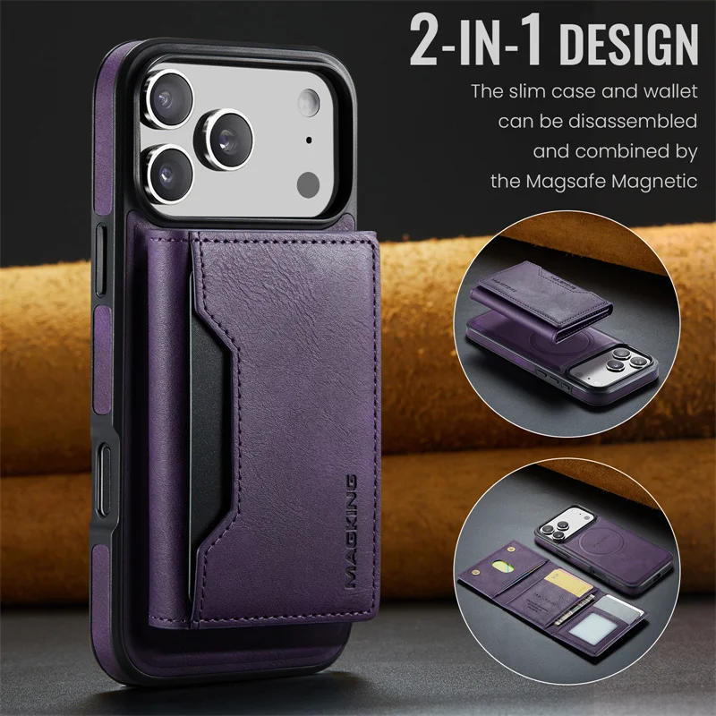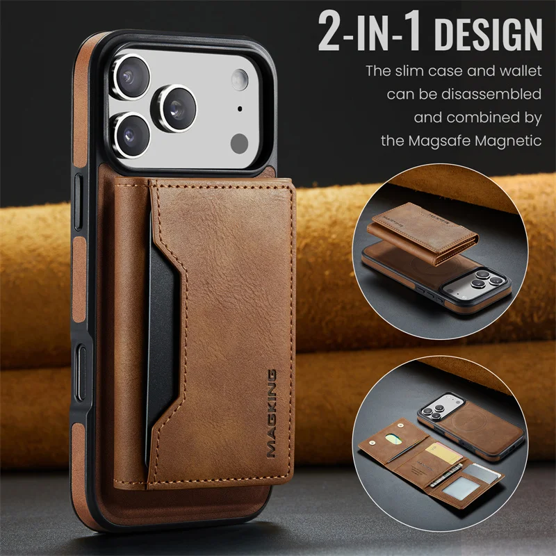 2 in 1 Magnetic Leather Wallet Case for iPhone