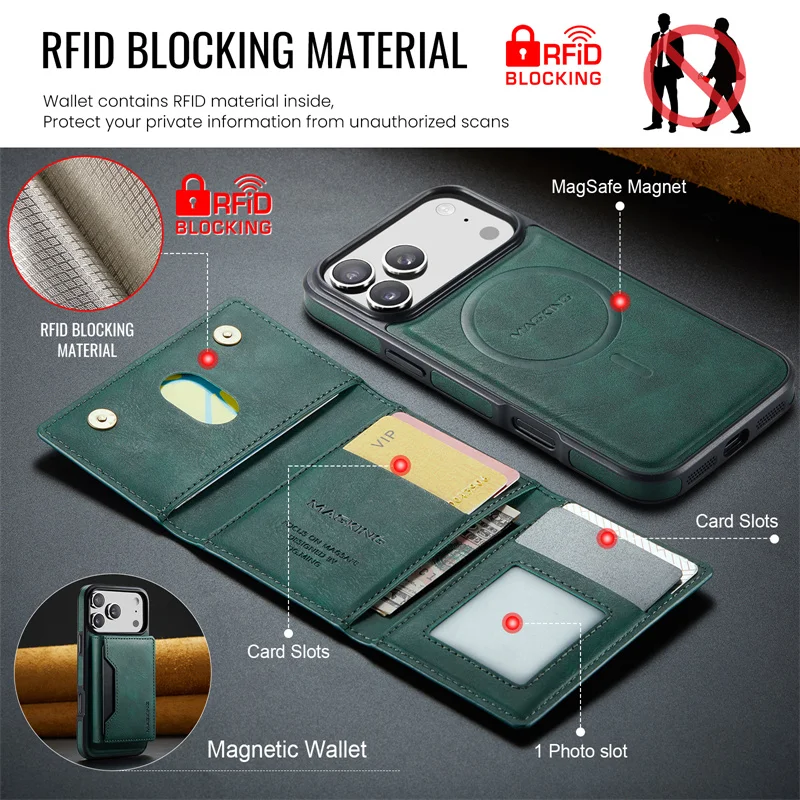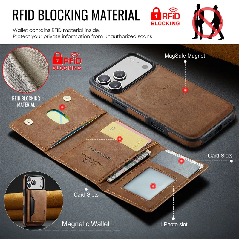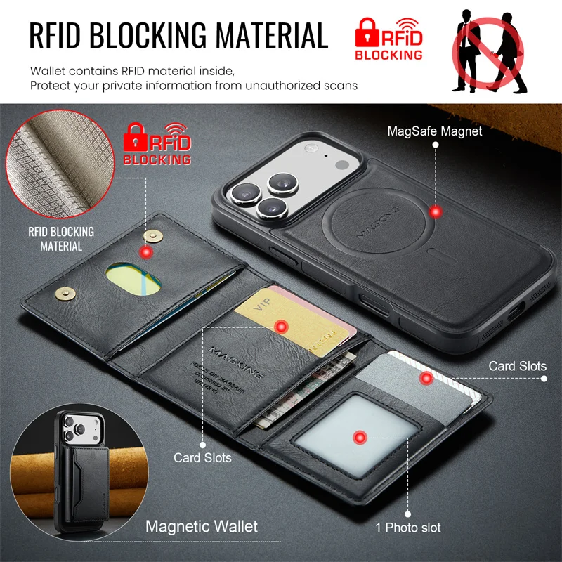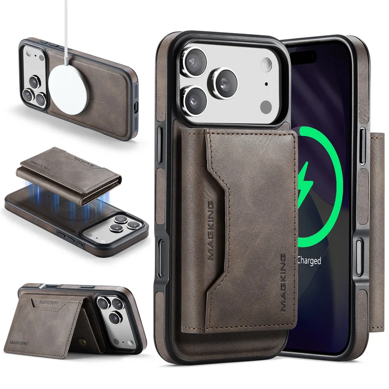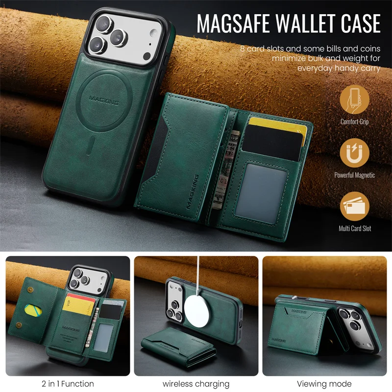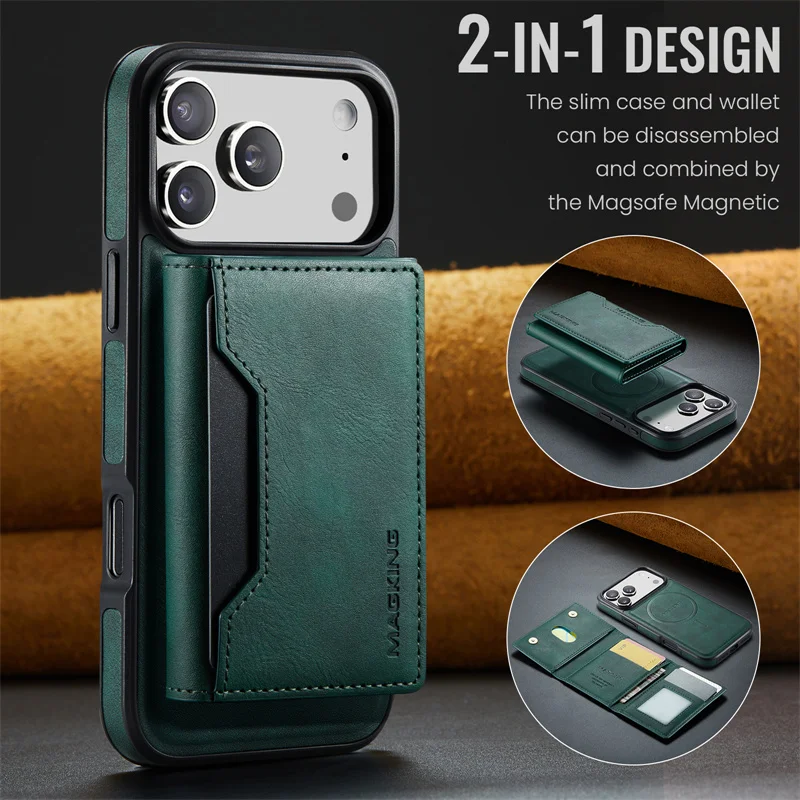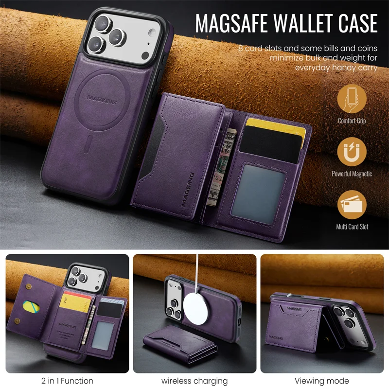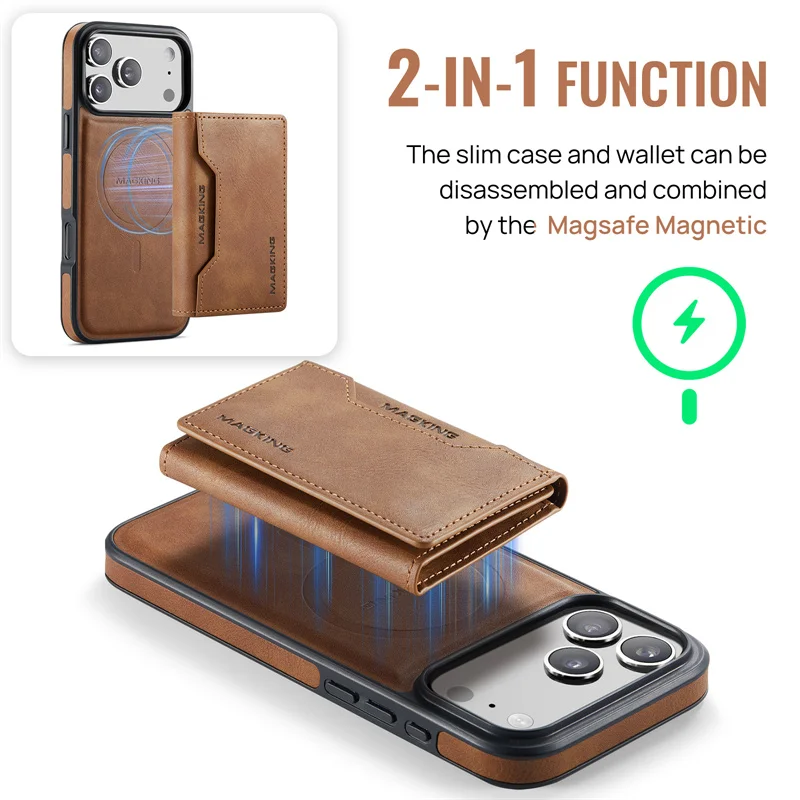 2 in 1 Magnetic Leather Wallet Case for iPhone