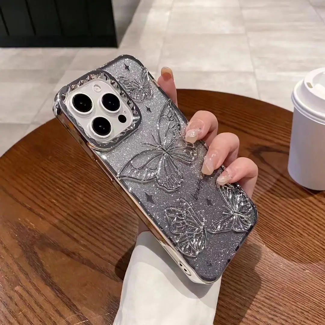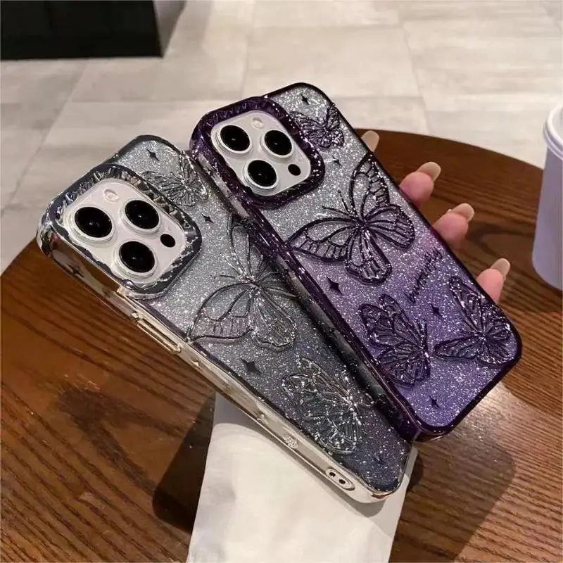 • 3D Bling Glitter Butterfly Quicksand Gradient Phone Case For iPhone