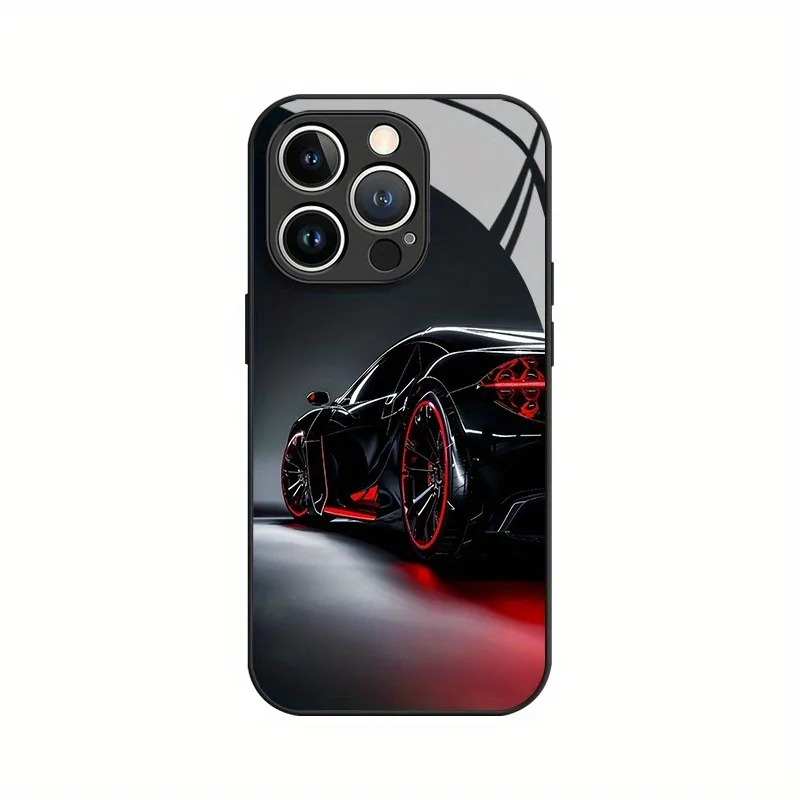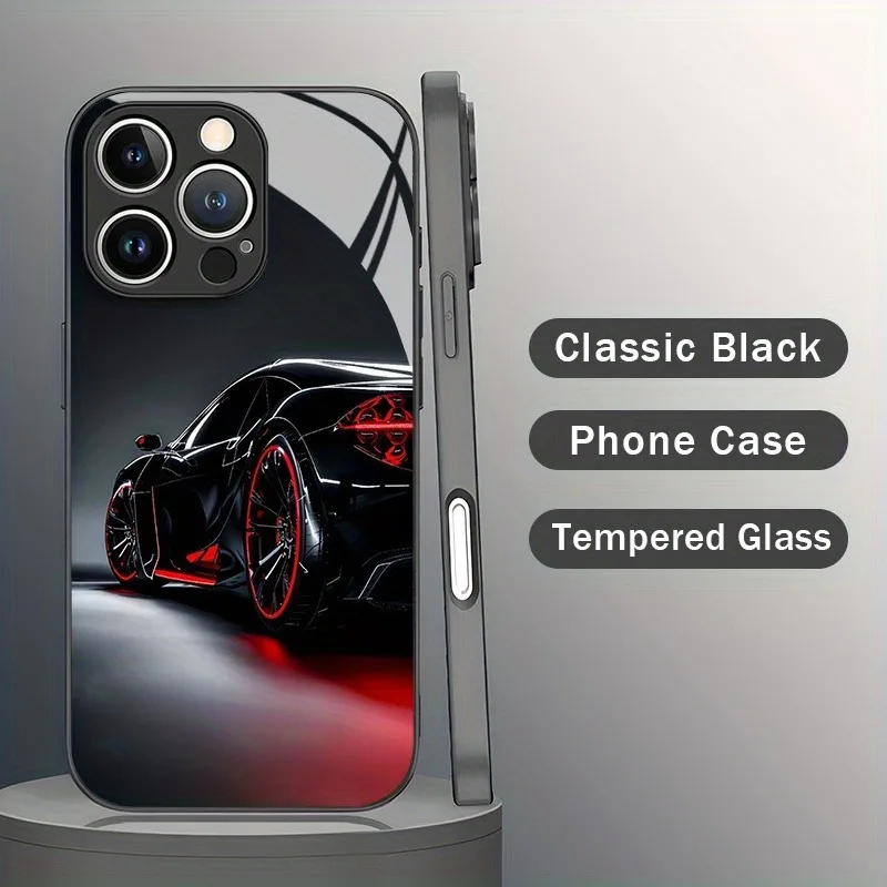 • Black Cool Car Pattern Glass Material Phone Case For iPhone