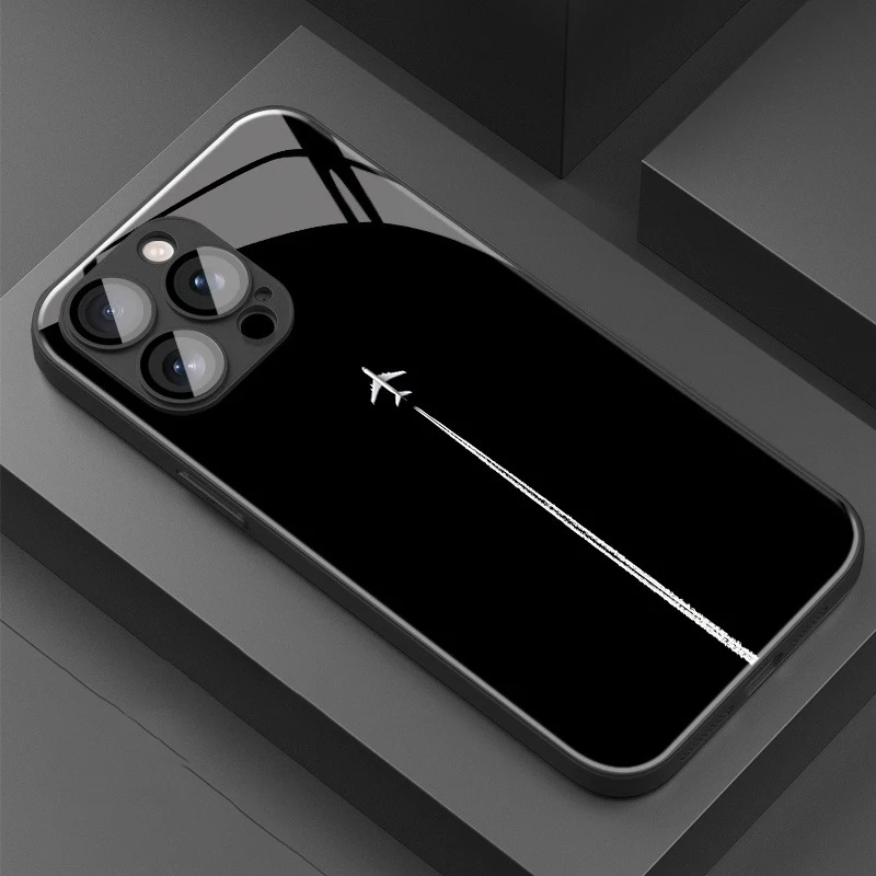 • Sky Airplane Contrail Pattern Tempered Glass Phone Case For iPhone