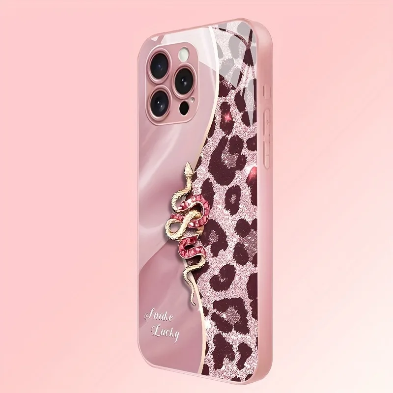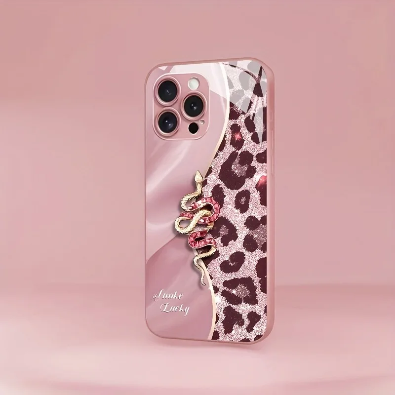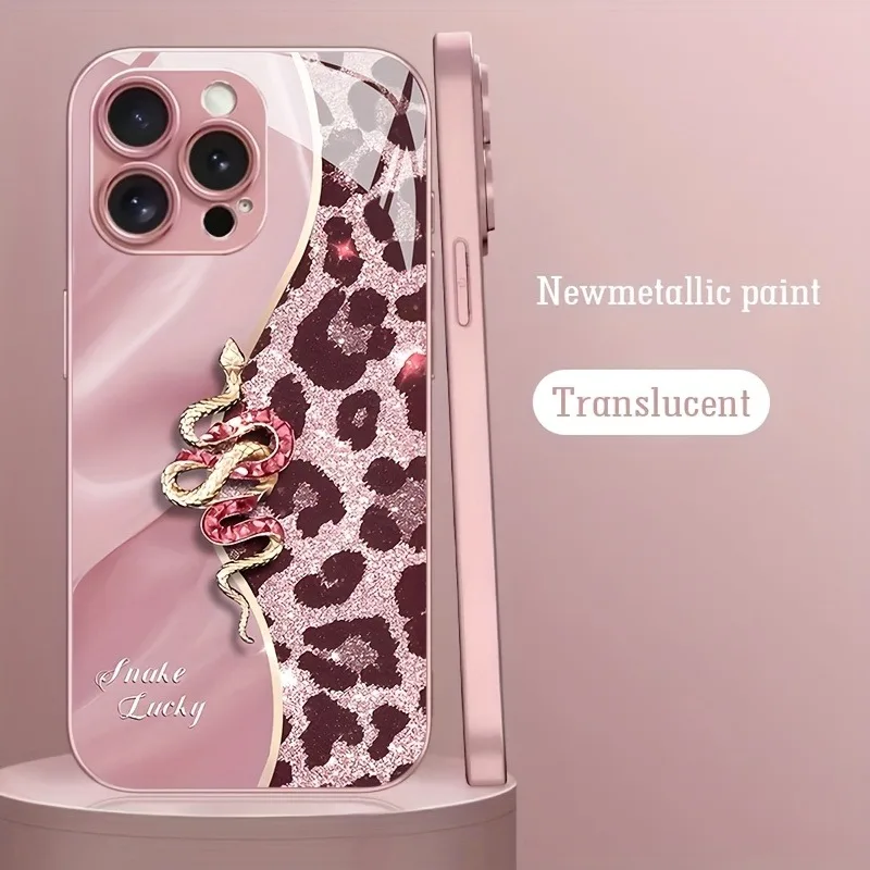 • Spliced Leopard Print Golden Snake Metallic Paint Glass Phone Case For iPhone