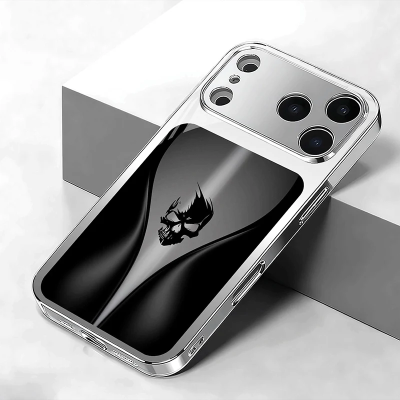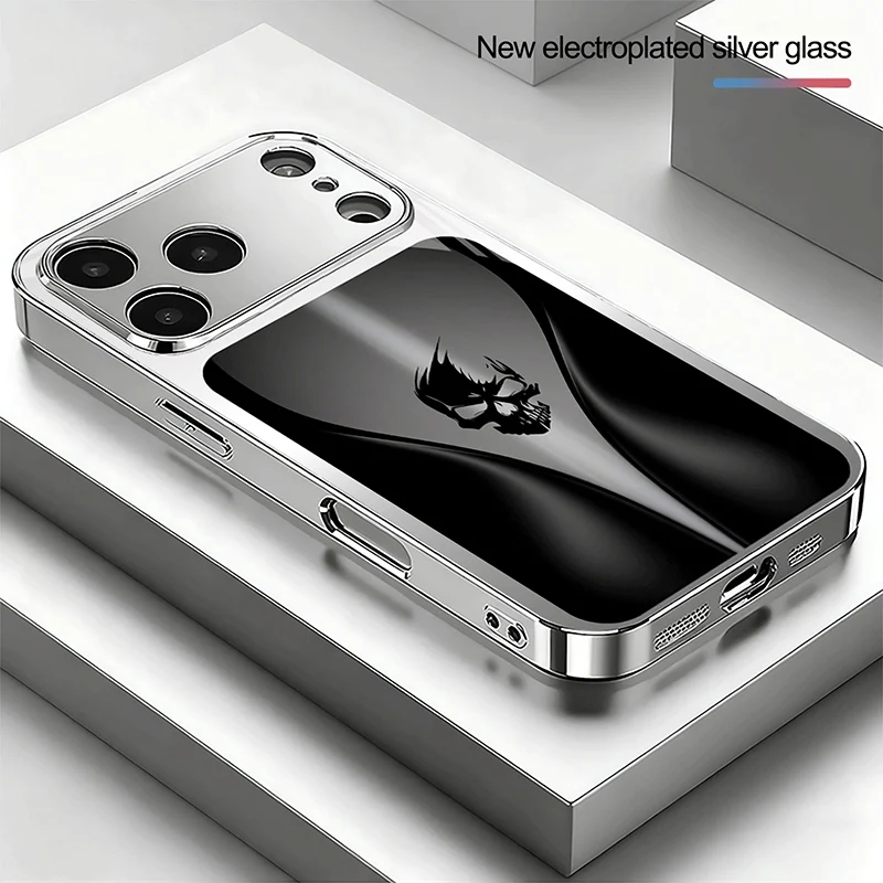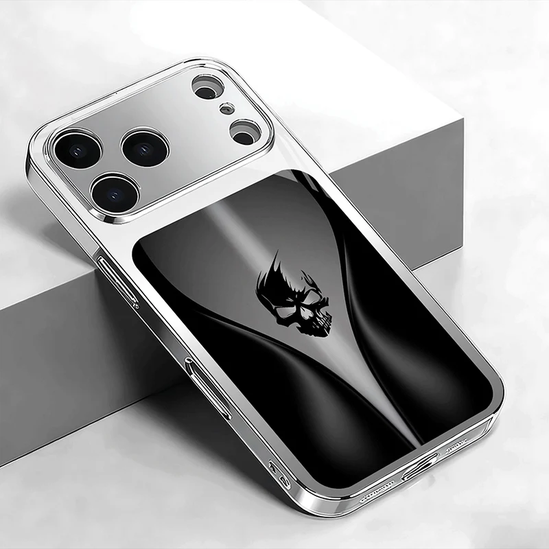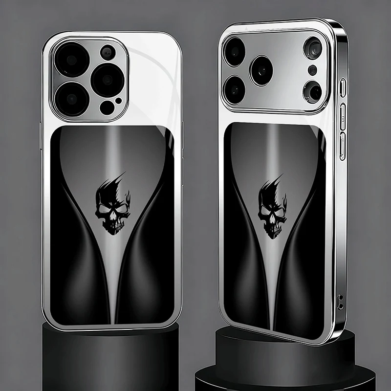 Black Background Skeleton Pattern Tempered Glass Phone Case For iPhone