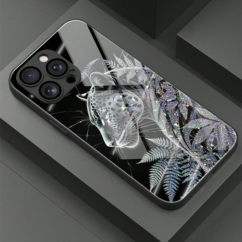 • Cool Leopard Animal Print Glass Material Phone Case For iPhone