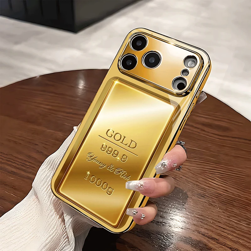 Gold Pure Gold Bar Pattern Gold Metallic Paint Glass Phone Case For iPhone