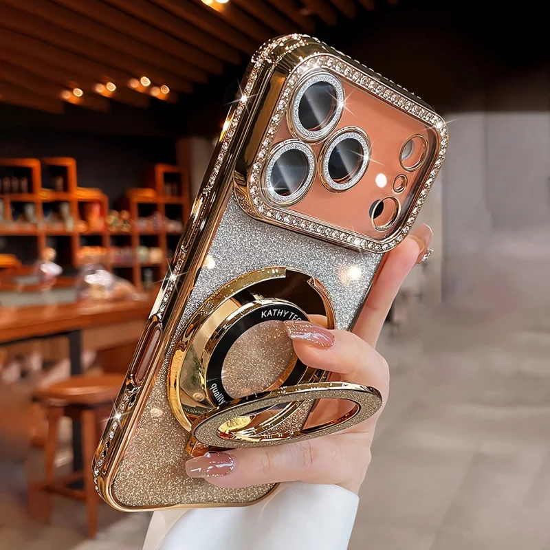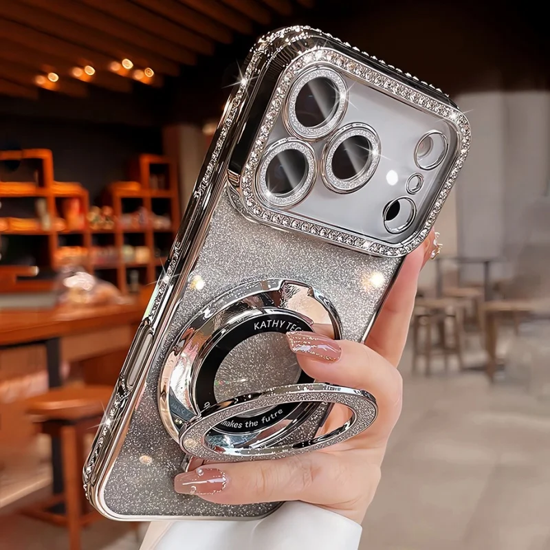 Plating For Magnetic Stand Holder Rhinestones Case For iPhone